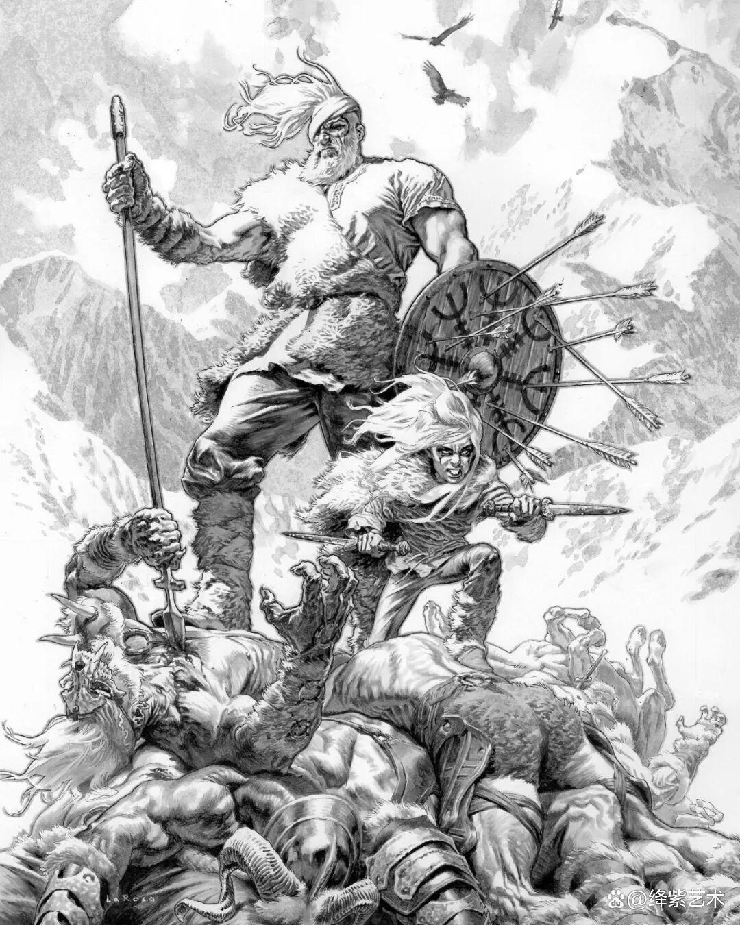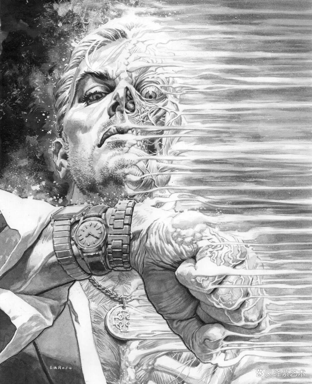 据绛紫艺术了解,刘易斯·拉罗萨出生于1978年,毕业于肯尼索州立大学,获得艺术学士学位。在大学期间,他就花费大量时间练习插画创作,从事插画绘制近30年的时间,大名鼎鼎的漫威漫画中,就有这位插画家描绘的角色与场景,由此可见他的插画创作能力。