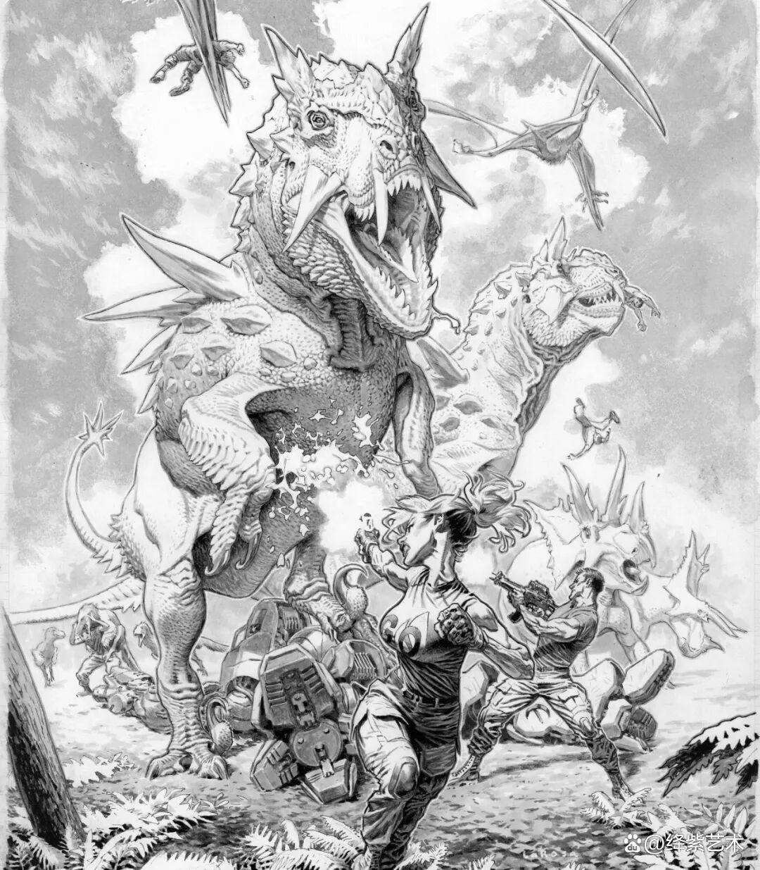 许多人都将刘易斯·拉罗萨比喻成“恐龙”,并不仅仅是因为他喜欢绘制恐龙题材的插画作品,还在于,手绘插画这种老古董,对于当前的科技来说太过于过时了。