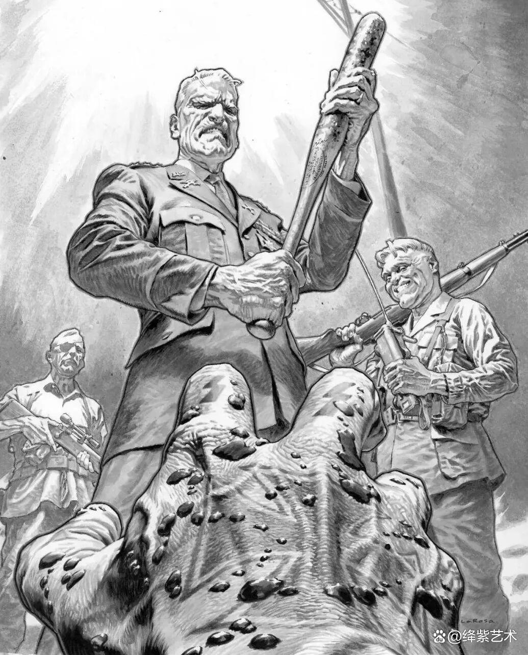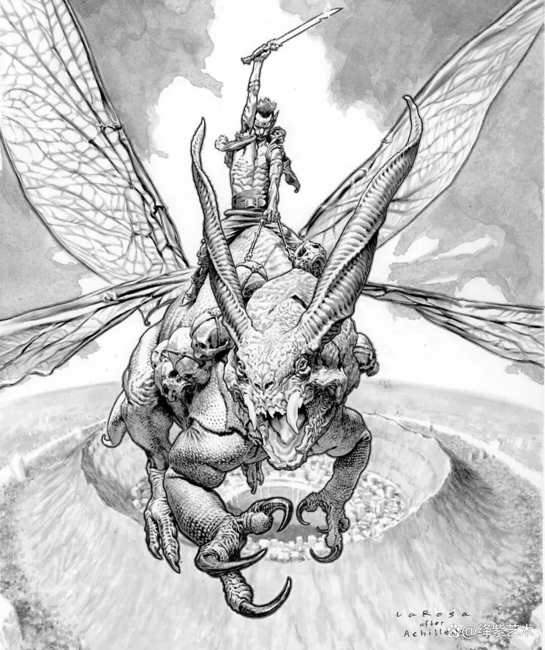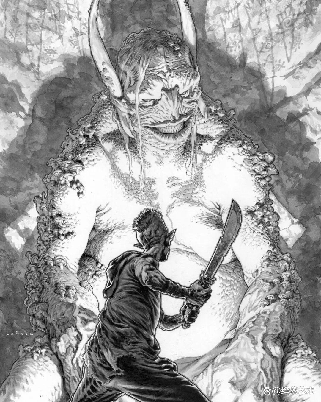 然而,凭借“古董级”的手绘插画作品,铸就了刘易斯·拉罗萨在插画领域不可撼动的地位。丰富的想象力,以及强大的绘画能力,让这些手绘而成的插画作品,变得格外精彩,即便是简单的黑白画面,还是能让人看得津津有味。