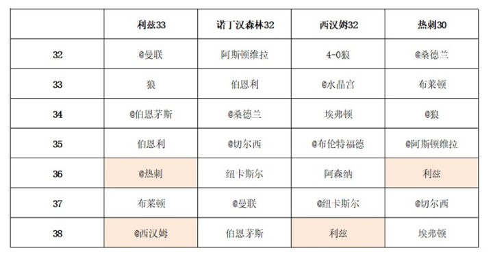 因此,只有30分的热刺,同积32分的诺丁汉森林和西汉姆,以及33分的利兹联,4支球队将会产生最后一个降级名额,其中西汉姆多赛一场。从这个分数来看,4支球队在剩下7场或者6场的情况下,就算赢下三场,也未必能够保级。