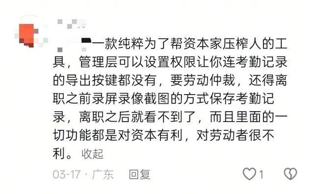 更有用户认为,某协同办公软件管理层可以设置权限,让员工无法下载考勤记录等信息,一旦发生劳动纠纷需要导出相关资料时,完全没法做到,对劳动者很不利。