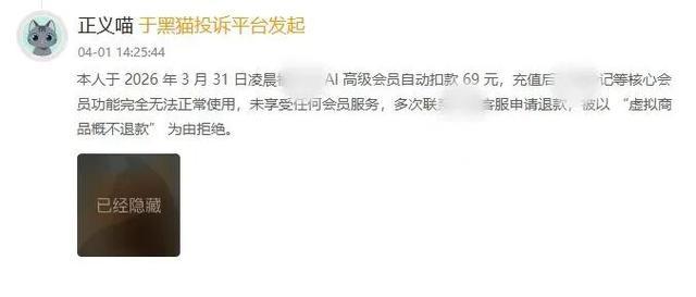 另一位用户则投诉称,其购买了某协同办公软件的会员后,发现该软件的核心会员功能完全无法正常使用,在未享受任何会员服务的情况下,多次联系官方客服申请退款被拒。